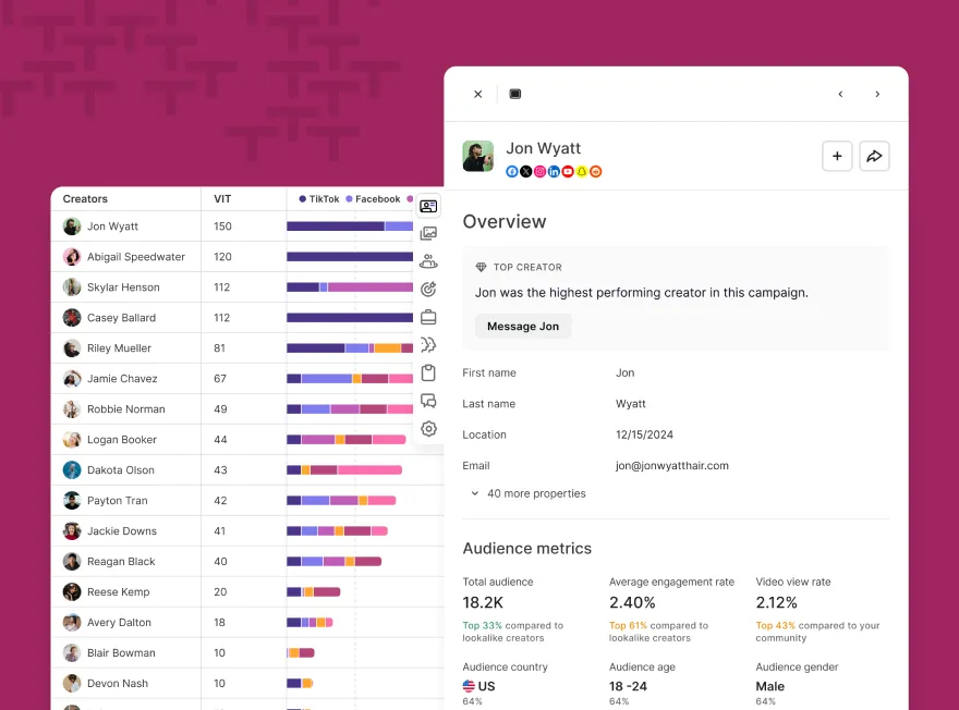 Maximize your ROI by analyzing creator spend efficiency (cost per engagement, cost per video view, etc.) and making better decisions on who to partner with.