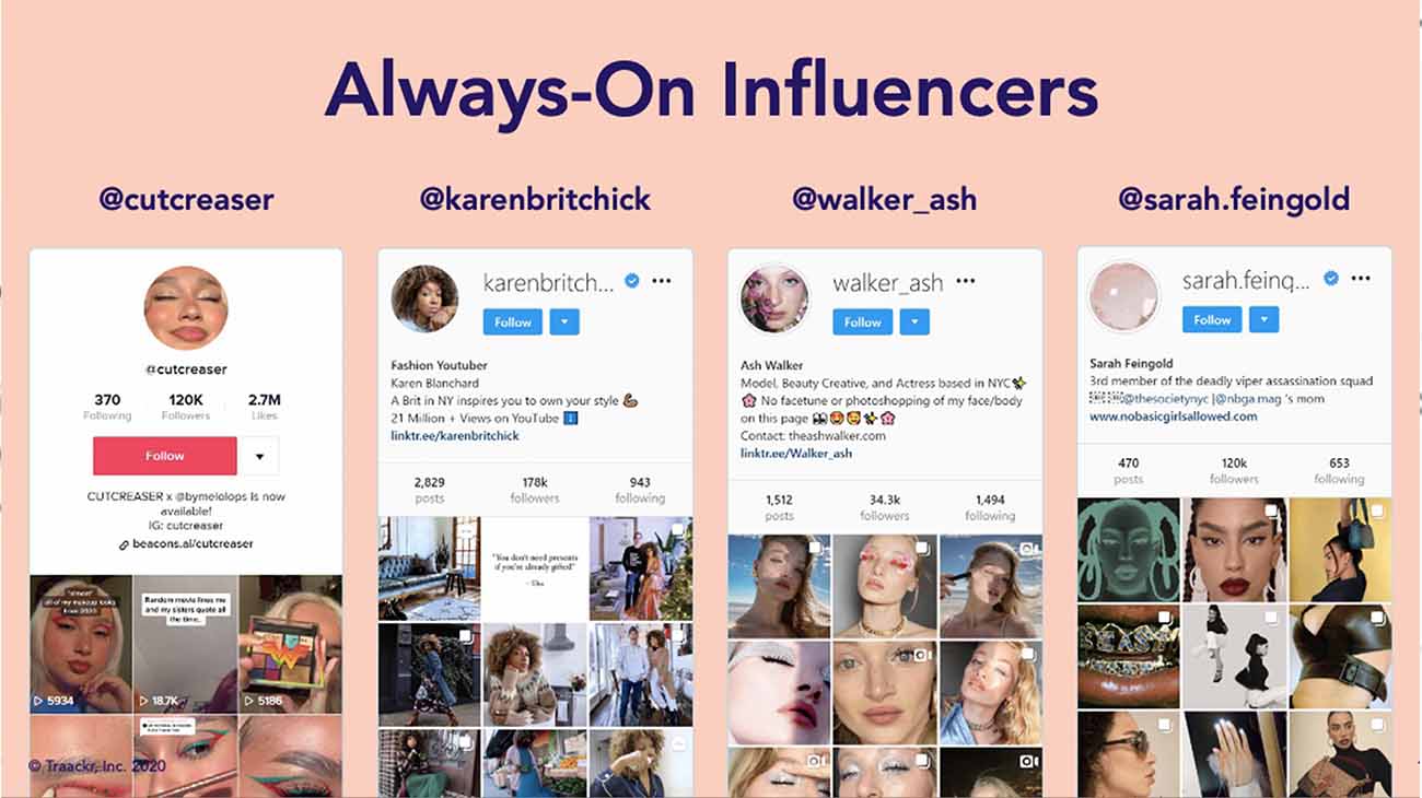 Revlon partnered with WW84 to create a makeup collection inspired by the movie. When the global pandemic hit, Revlon was faced with the challenge of launching this new collection without the momentum of the movie’s release, which was delayed. After an initial pause, Revlon moved forward with the collection release in July 2020, nearly six months before the movie was eventually released. Driven by strategic influencer partnerships, Revlon orchestrated an extraordinarily powerful launch on social media and delivered extraordinary results. Here’s how they did it with the support of Traackr.