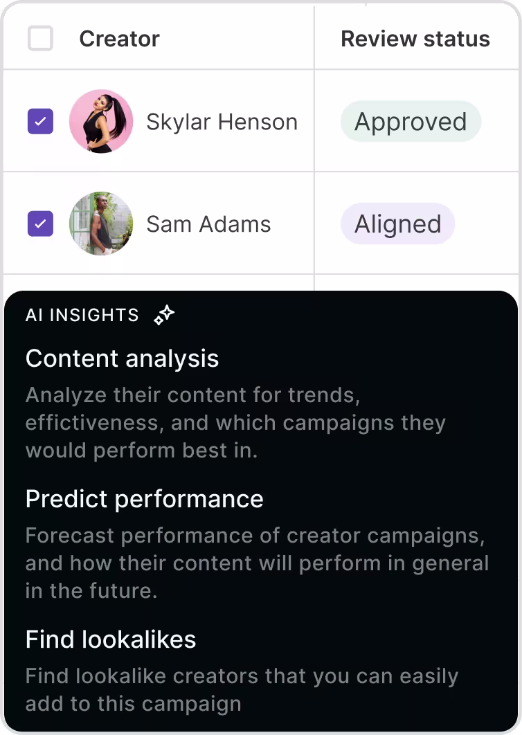 The decision engine for creator marketing—uncover the growth levers hiding in your creator data and action it at scale.