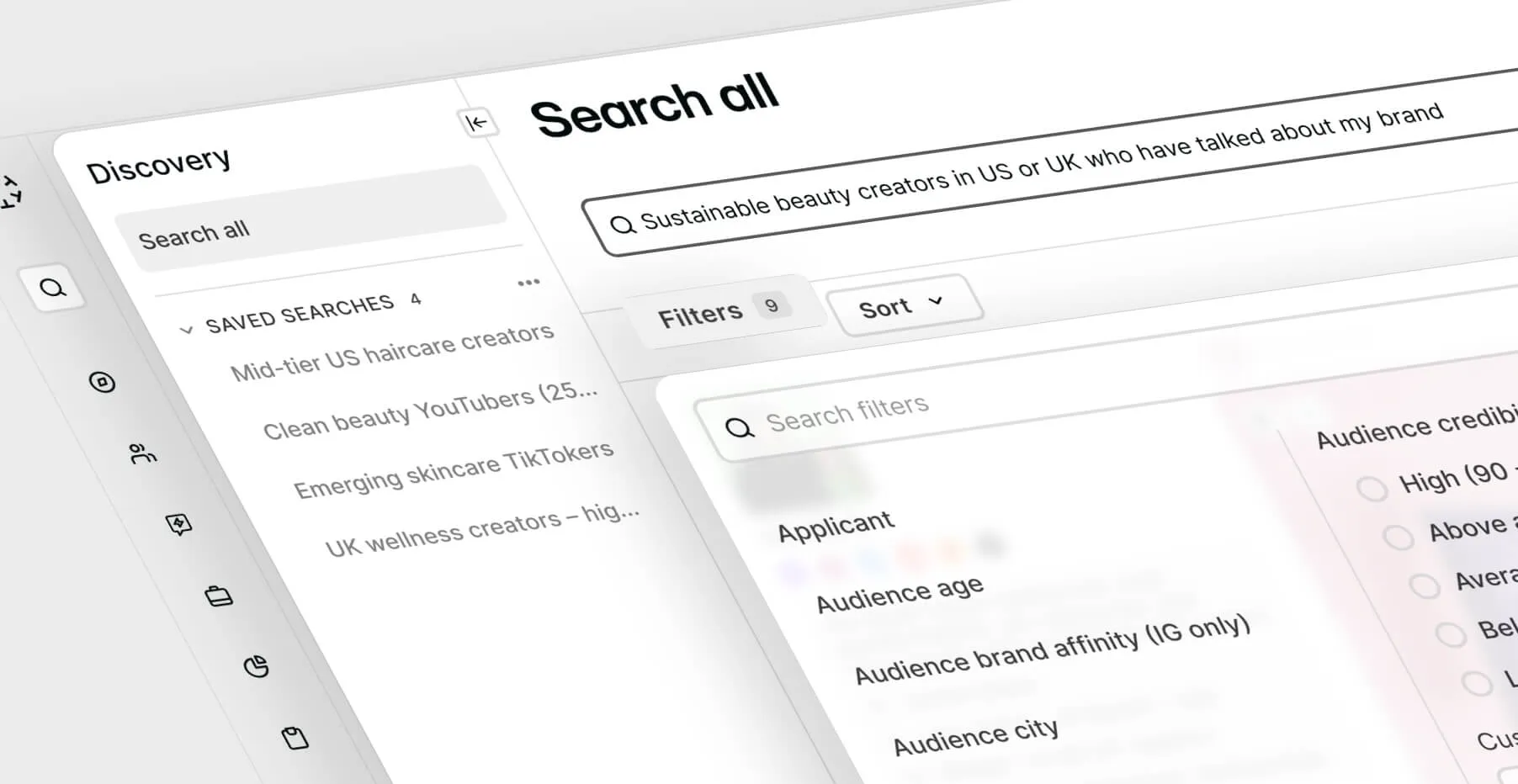 Find, recruit, and qualify creators with advanced filters, AI content summaries, brand safety checks, smart recommendations, and performance insights.